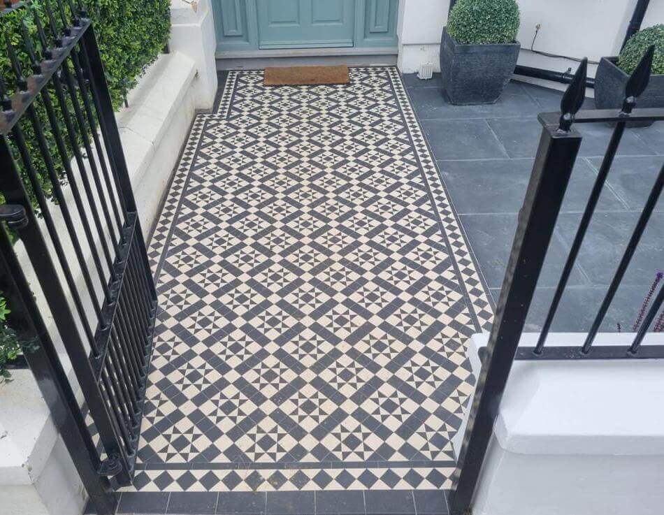 Are you ready to upgrade your front garden with a luxurious geometric/mosaic-tiled porch/path? Contact us today for professional Victorian tile installation services in East Sheen SW14.